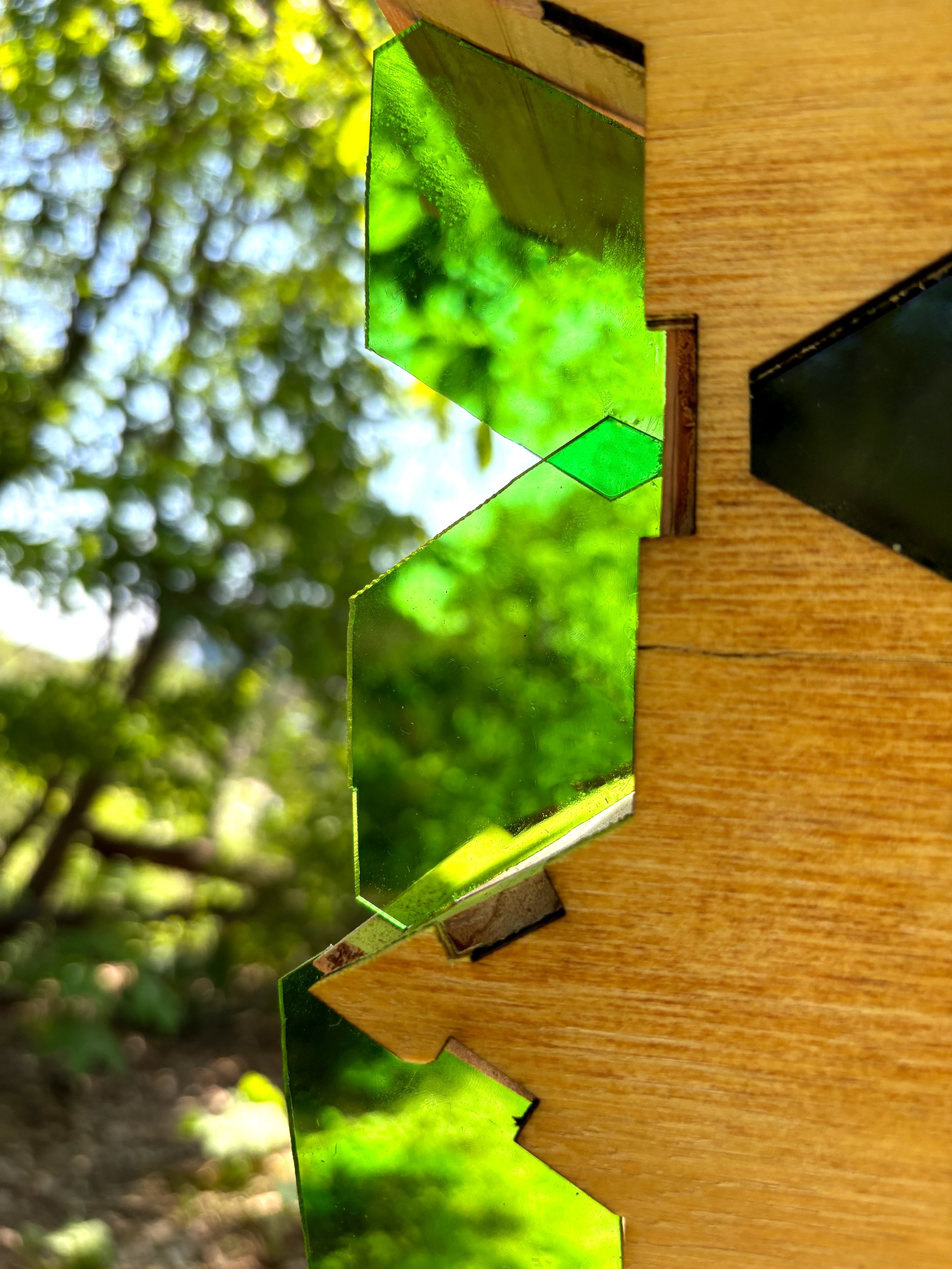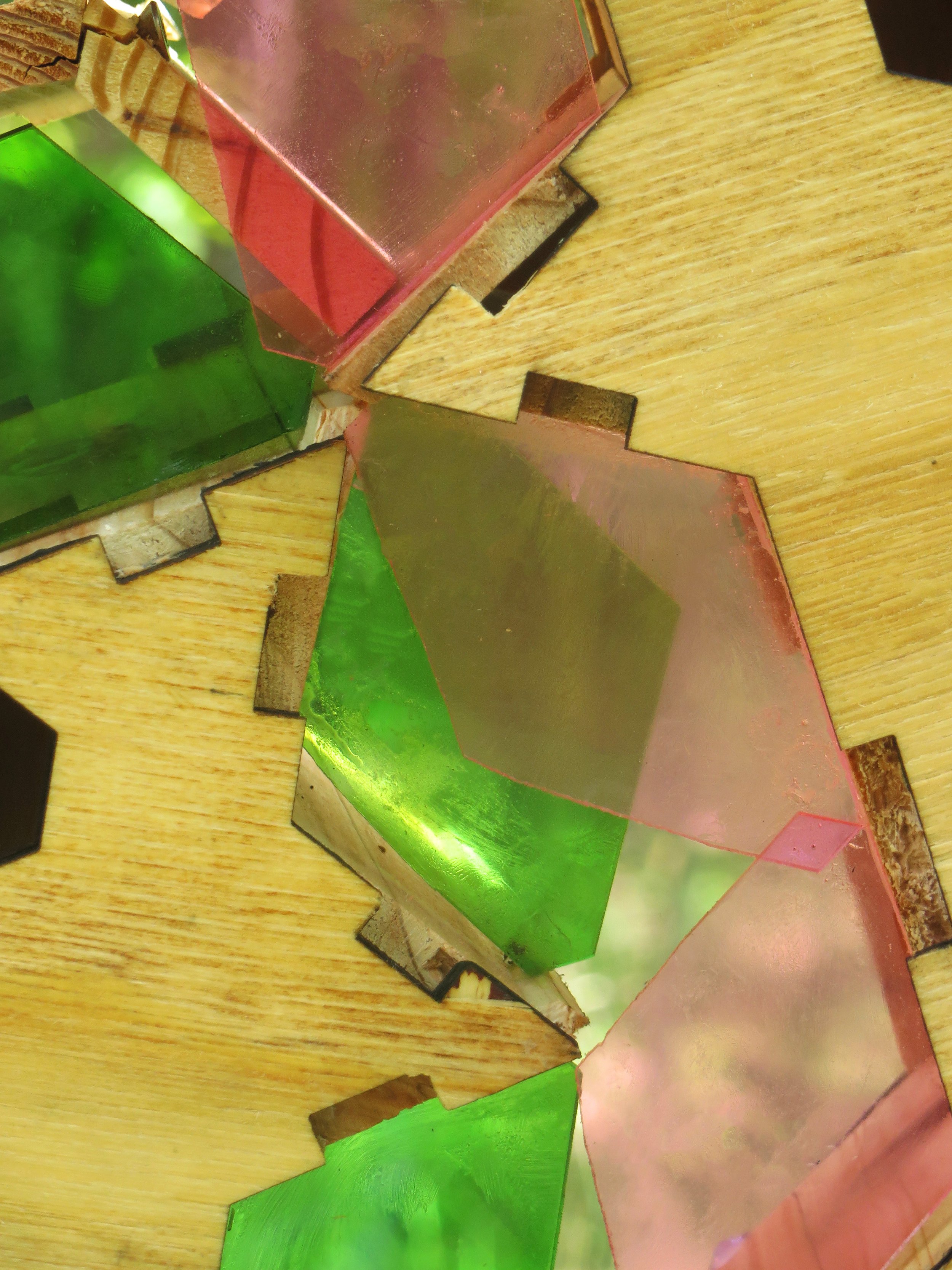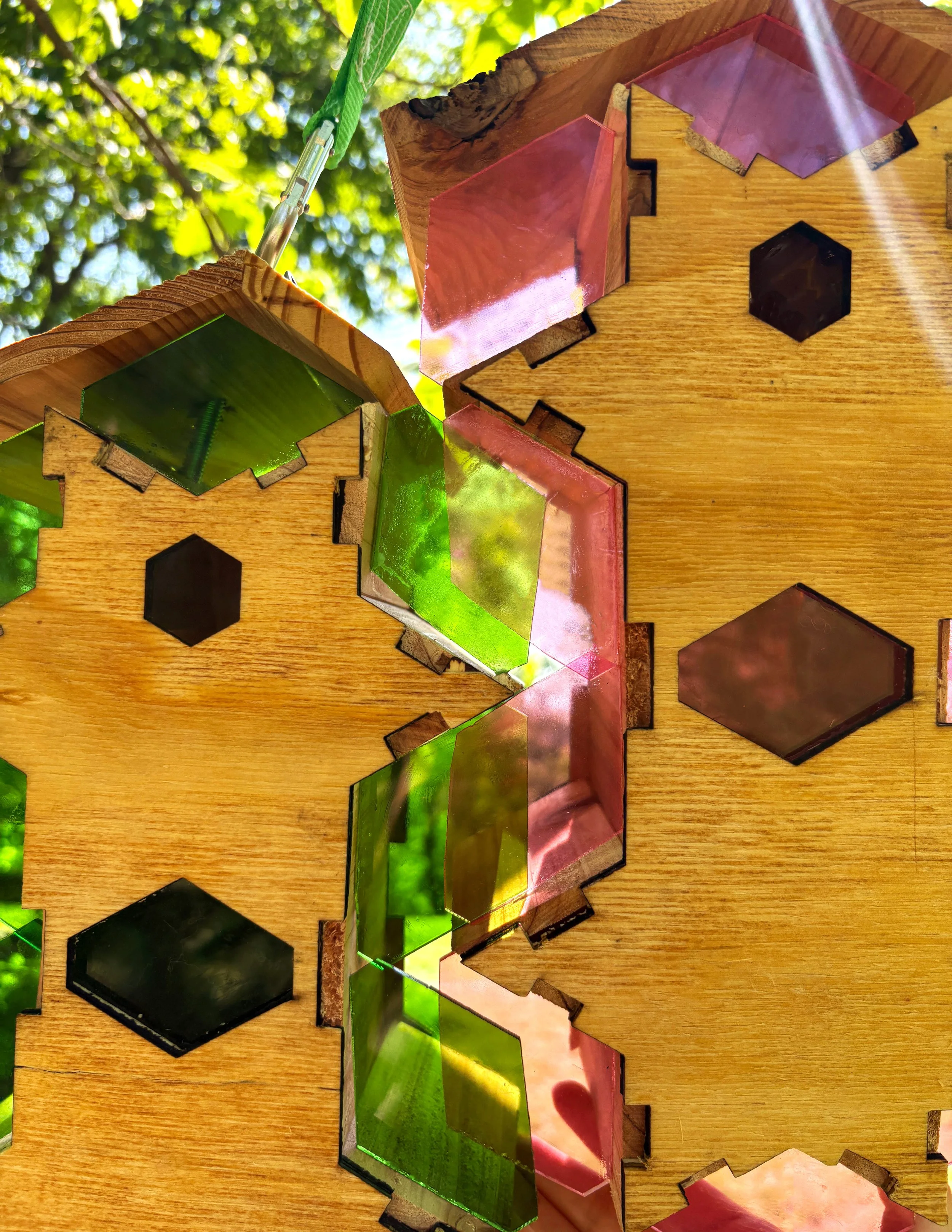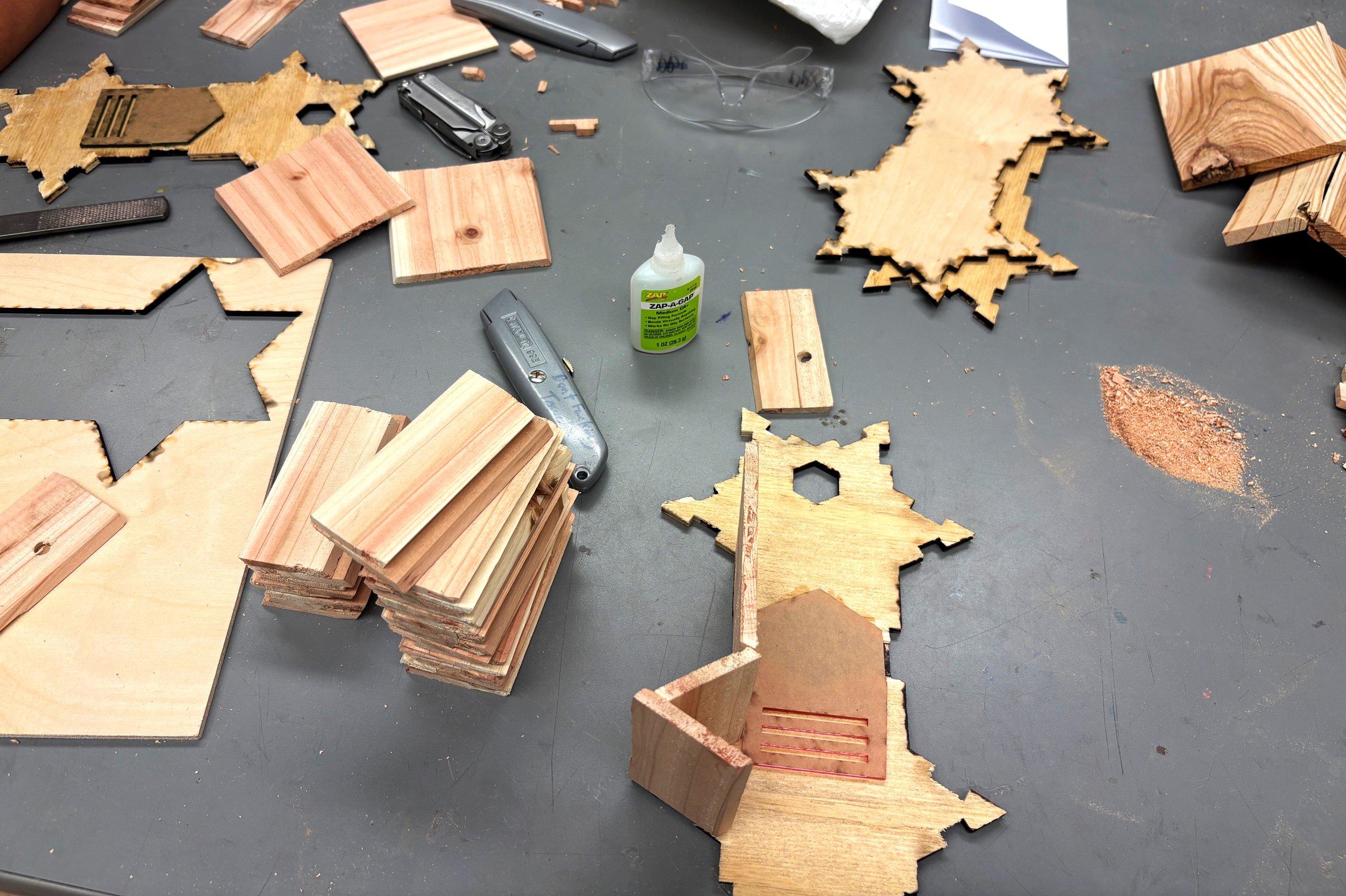 Demonstrates how the birdhouse is constructed and how the acrylic pieces hold together the modular units.